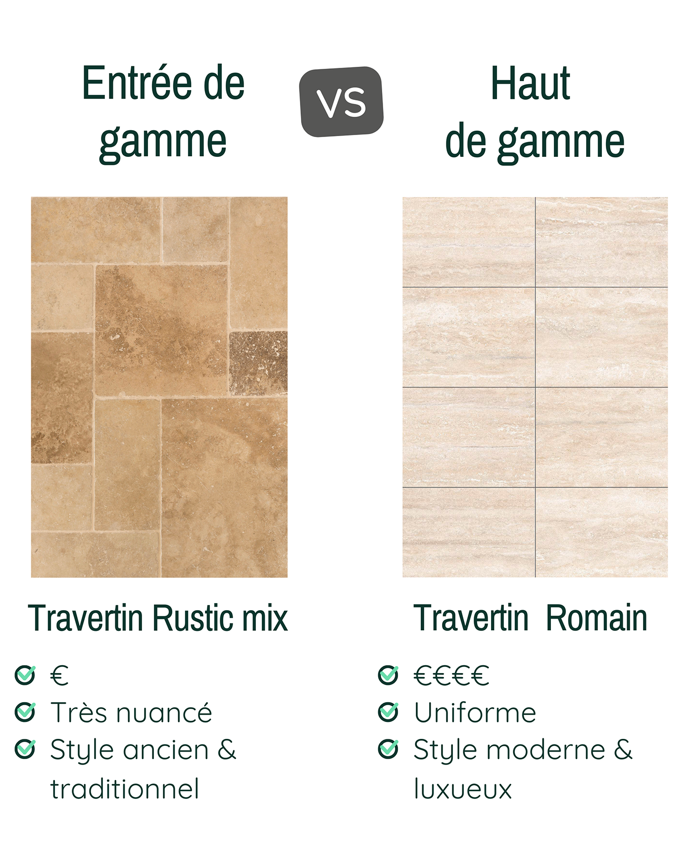 Das Problem? Nichts hindert einen Verkäufer daran, Travertin für 11 € pro m² anzubieten und ihn als „erste Wahl“ zu bezeichnen , auch wenn seine Qualität sehr schlecht ist.