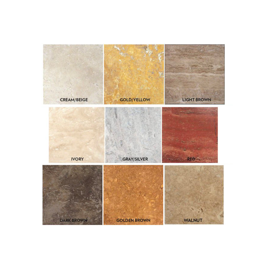 Die Farbpalette ist relativ breit und reicht von Beige (am häufigsten), Braun , Gelb , Rosa bis hin zu Silbergrau (auch Silbertravertin genannt).