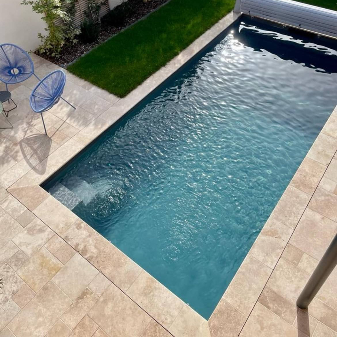 In Kombination mit der richtigen Bodenbeschichtung ist Travertin rutschfest und somit eine ideale Option für Nassbereiche wie Poolränder und Beckenrandsteine.