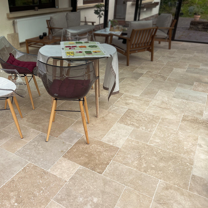 Pflaster Kalkstein ALMENDRA gebrochene kanten