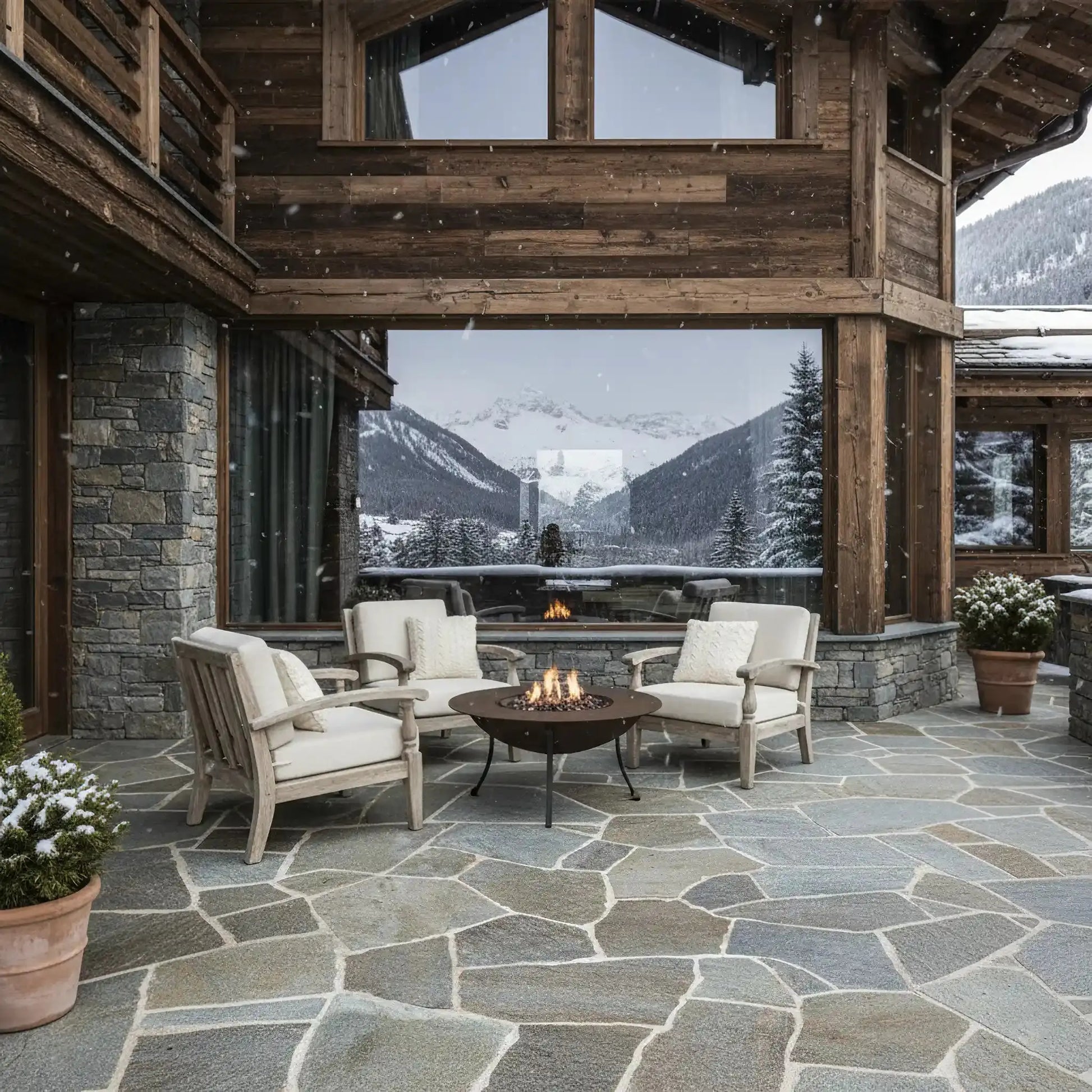 Der LUZERNE Quarzit Opus Incertum ist ein Naturstein mit subtilen Farbtönen, die helles Beige, sanftes Grau und warme Mineralnuancen kombinieren. Seine natürliche, unregelmäßige Oberfläche verleiht ihm ein lebendiges, authentisches Aussehen und eignet sich ideal für Außenbereiche wie Terrassen, Gehwege und Pooldecks.