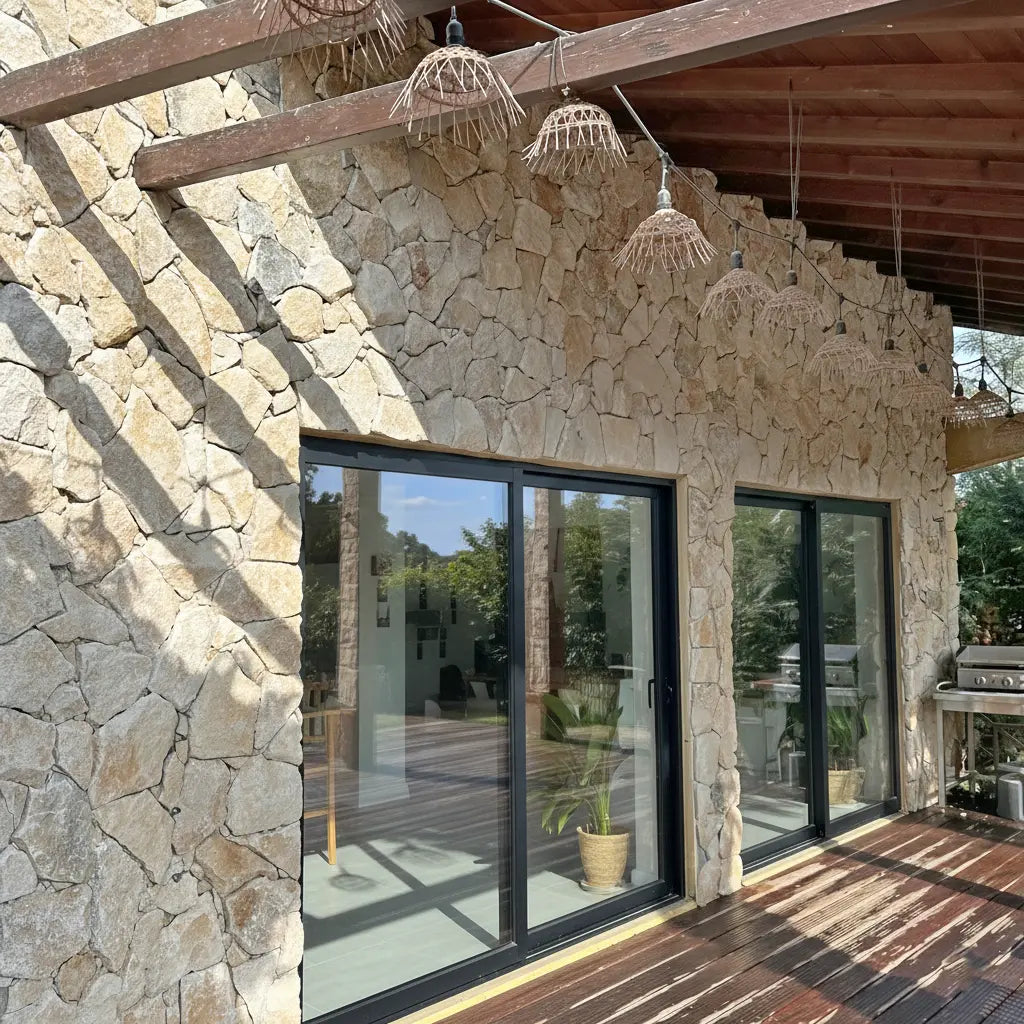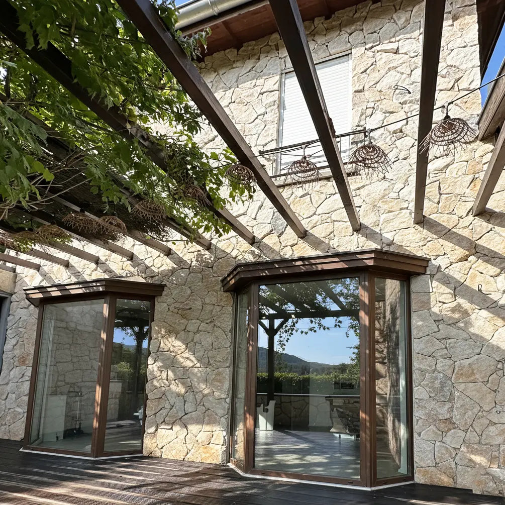 Diese Verkleidung kann sowohl im Innen- als auch im Außenbereich verwendet werden und passt perfekt zu Renovierungsprojekten oder Konstruktionen im traditionellen Stil. Die Installation des verlorenen Steins, bekannt als „Incertum“, verstärkt das natürliche und lebendige Erscheinungsbild der Fassade oder der verkleideten Wand.