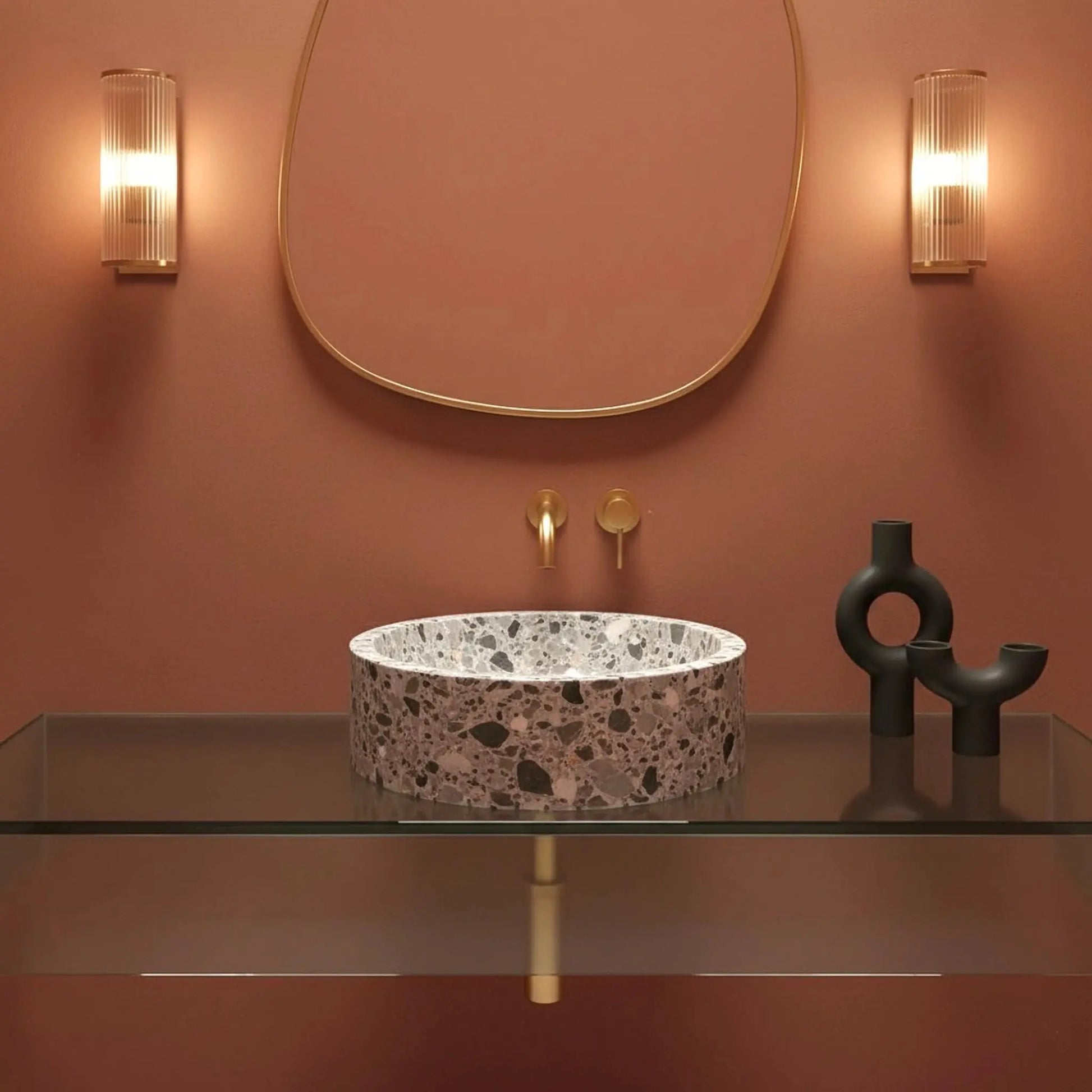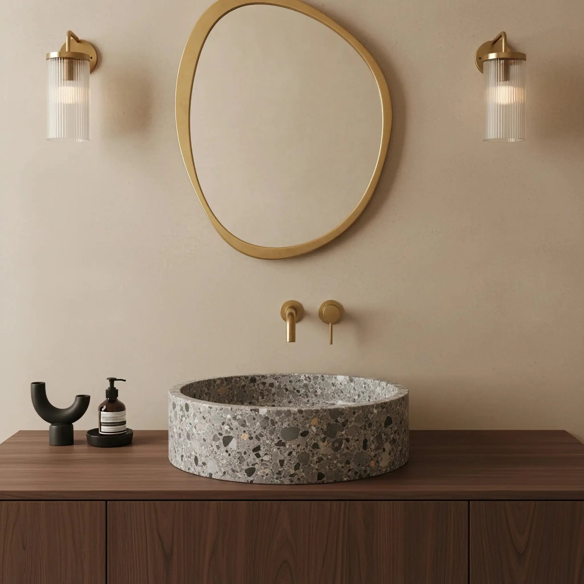 Cette vasque ronde est taillée dans un marbre Breccia Parma d’exception, sélectionné pour ses nuances subtiles de gris, blanc, beige, brun et ocre. Chaque pièce est façonnée dans notre atelier de marbrerie en Moselle, où nos artisans maîtrisent le travail de la pierre pour un rendu précis et qualitatif.